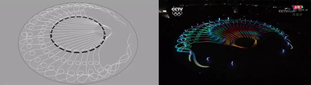 既要考虑到演员与冰屏的移动问题,同时又要保证最后成型的图案形似,光是设计手稿,都已不下百张。地屏上每个图案的线条粗细,都是经过多次调整后的呈现。