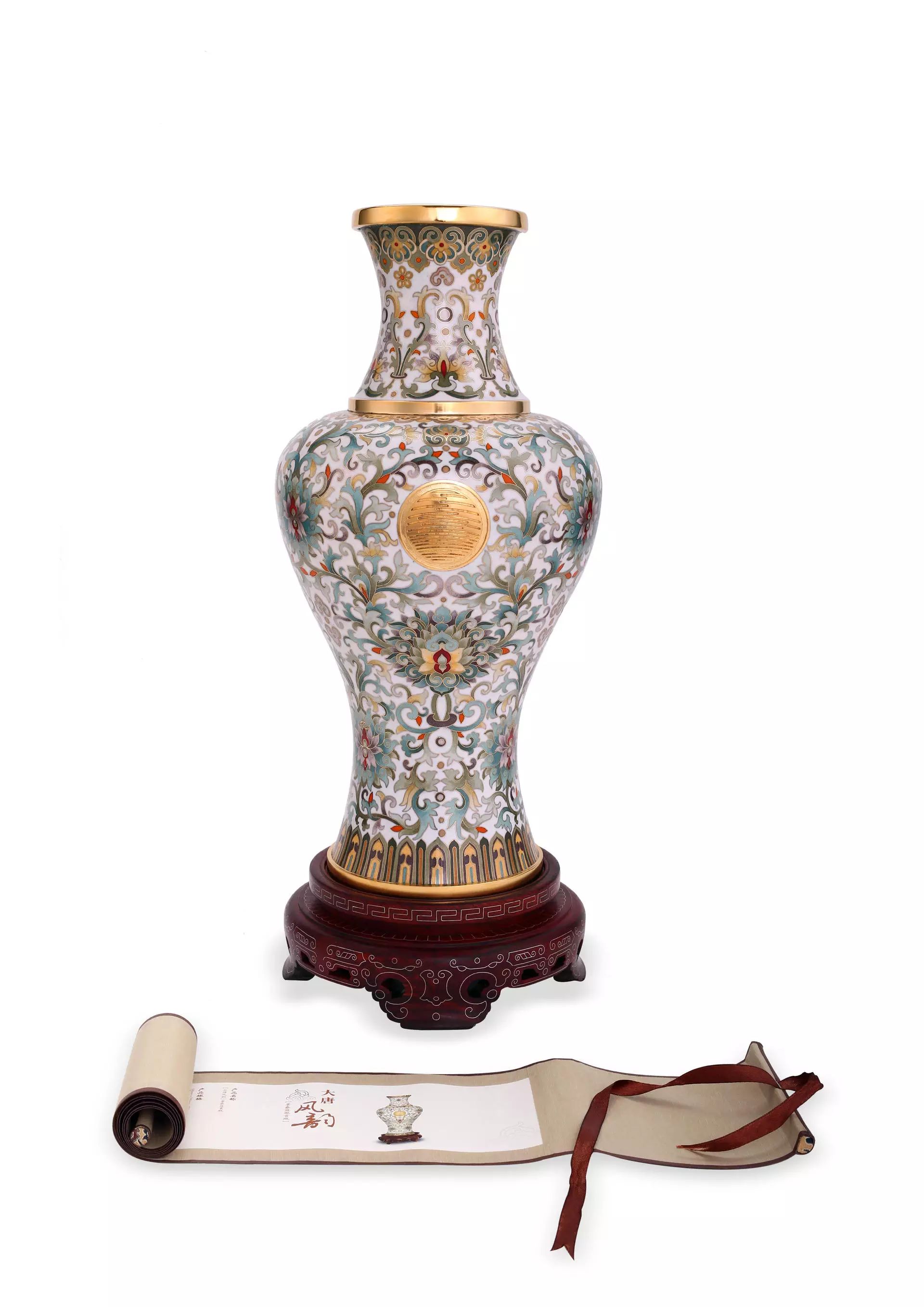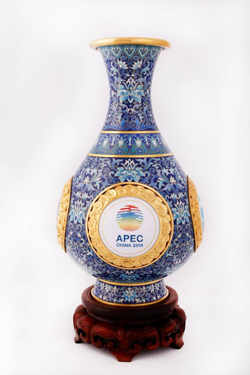 2014年北京APEC峰会最高领导人赠礼。以国家级非物质文化遗产景泰蓝工艺制作完成,器型经典、色调典雅、契合峰会主题。