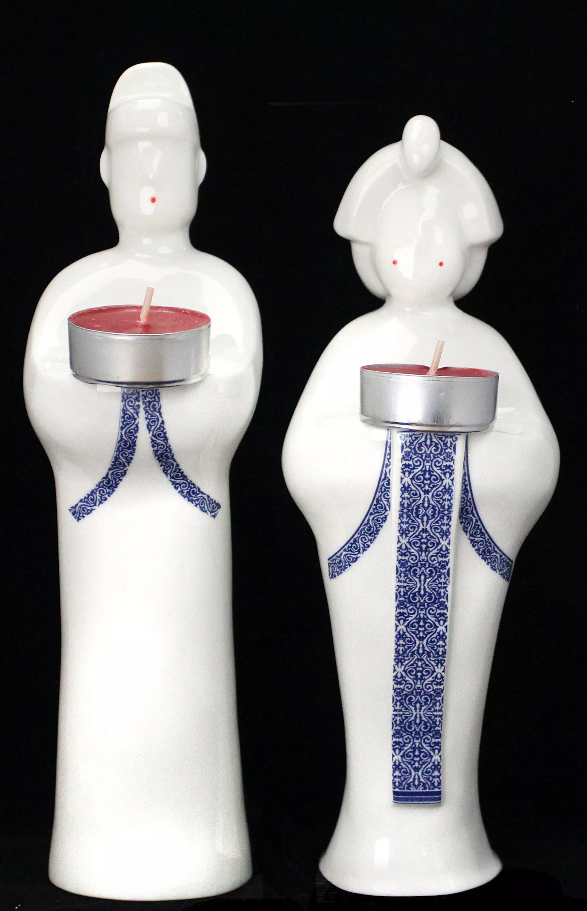 结合中国传统人物造型、服饰特点及陶瓷工艺,运用现代设计手法,根据现代生活需求,创新设计的具有中国风尚及时代特点的烛台。