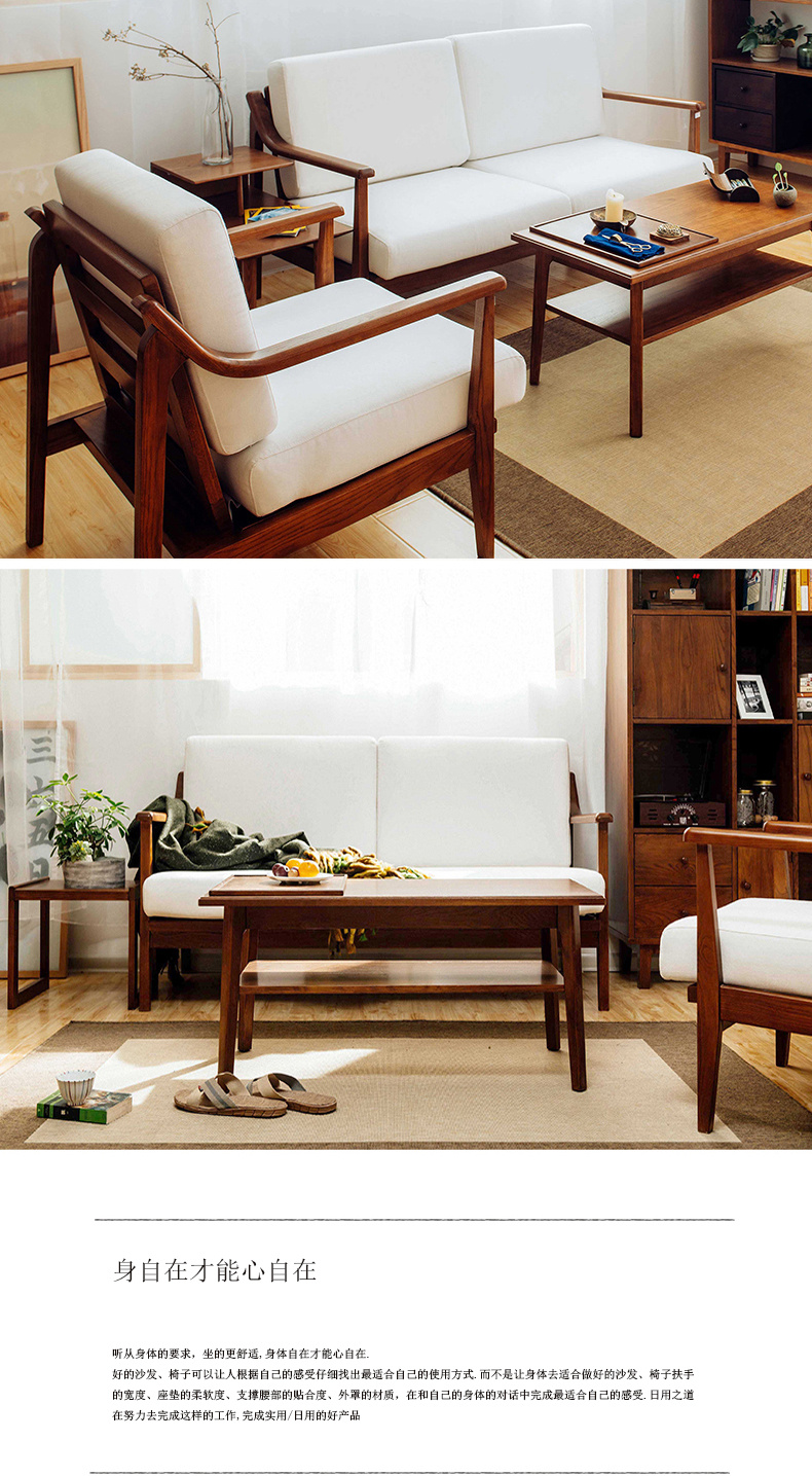 日用之道实木沙发 布艺沙发三人位单人位沙发 实木家具