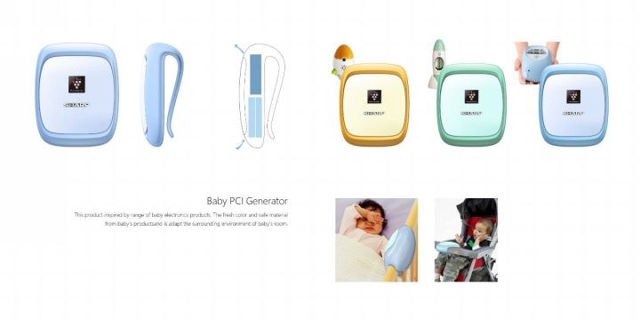 在夏普公司设计的一款针对儿童的空气消毒小家电预研,主要是将夏普的空气净化技术应用到儿童用品中,采用悬挂式,可运行三个小时,并可外接充电电池。该产品目前还处于预备研发阶段。