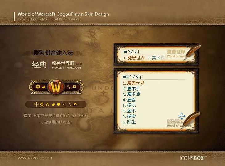 06年设计制作的搜狗输入法皮肤(经典魔兽版)
