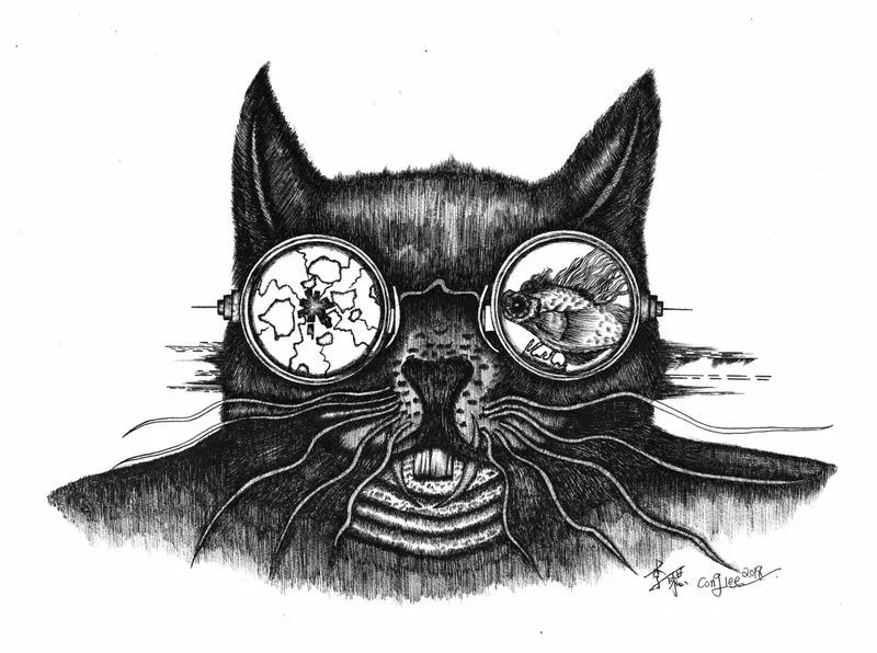 他的作品,笔触细腻精致柔美,以传统艺术与东方美学结合,再以石版画的艺术形式融入的表达方式与哲思。