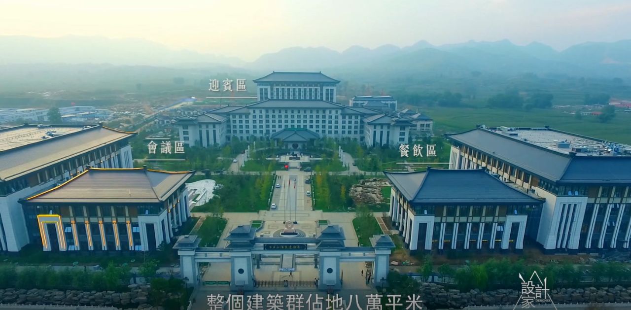 整个建筑群占地八万平方米,分为三个功能区,餐饮区用于大型宴会接待,整体风格偏重唐代的浓重华丽;会客区延续了汉代古拙大气的建筑精髓;迎客区则综合了汉唐建筑的小品文化,别致素雅。