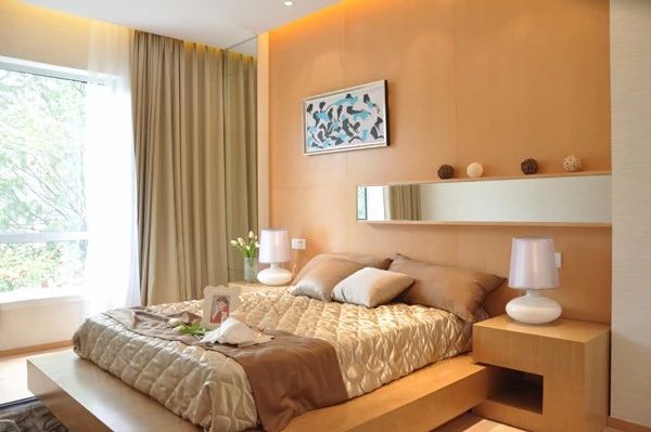 卧室整体采用中性色调,稳重,大气,却又不失品位,有令人眼前一亮的感觉。最重要的是强调功能性设计,线条简约流畅,色彩对比强烈,这是现代风格家具的特点,此外大量使用茶镜、条纹壁纸等材料作为辅材,能给人现代、时尚、大气的感觉。客厅作为家庭生活活动区域之一,既是全家活动、娱乐、休闲、团聚、就餐等活动场所,又是接待客人对外联系交往的社会活动空间,是家居生活的核心区域,客厅装修是整个家庭装修的重点。由于有了重点的电视背景墙,所以其他地方的装饰可以简单点。本案电视背景墙的设计是整个住宅空间的亮点,运用了茶镜、橡木、简单的装饰材料,营造出现代化空间 。色彩作为装饰手段,墙面色彩因能改变居室的外观与格调而受到重视。