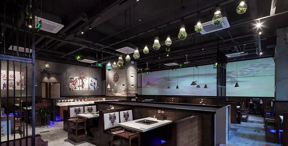 全息投影技术,瞬间切换不同的场景,坐在这里吃饭会有种身家过亿的错觉,营造出各种多维自然风光:冰川、星空、薰衣草场...震撼的景观令客人体验到“食着火锅去旅行”的感觉。
