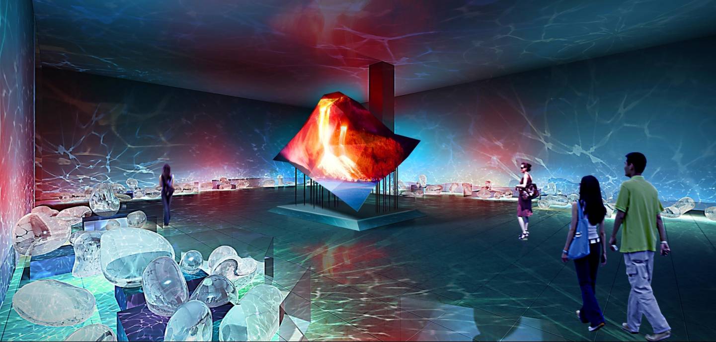 一个充满了张力和无限想象力的展馆,结合水晶产品,全面展示佛家和道家的相关文化及具有史诗般的内在气质。复杂定制的装修工艺和多媒体展示手段的完美结合。空间风格的强烈反差,突破常规设计的的设计思路。并将纯艺术在商业项目中成功的应用。成为新一代展馆的标新之作。