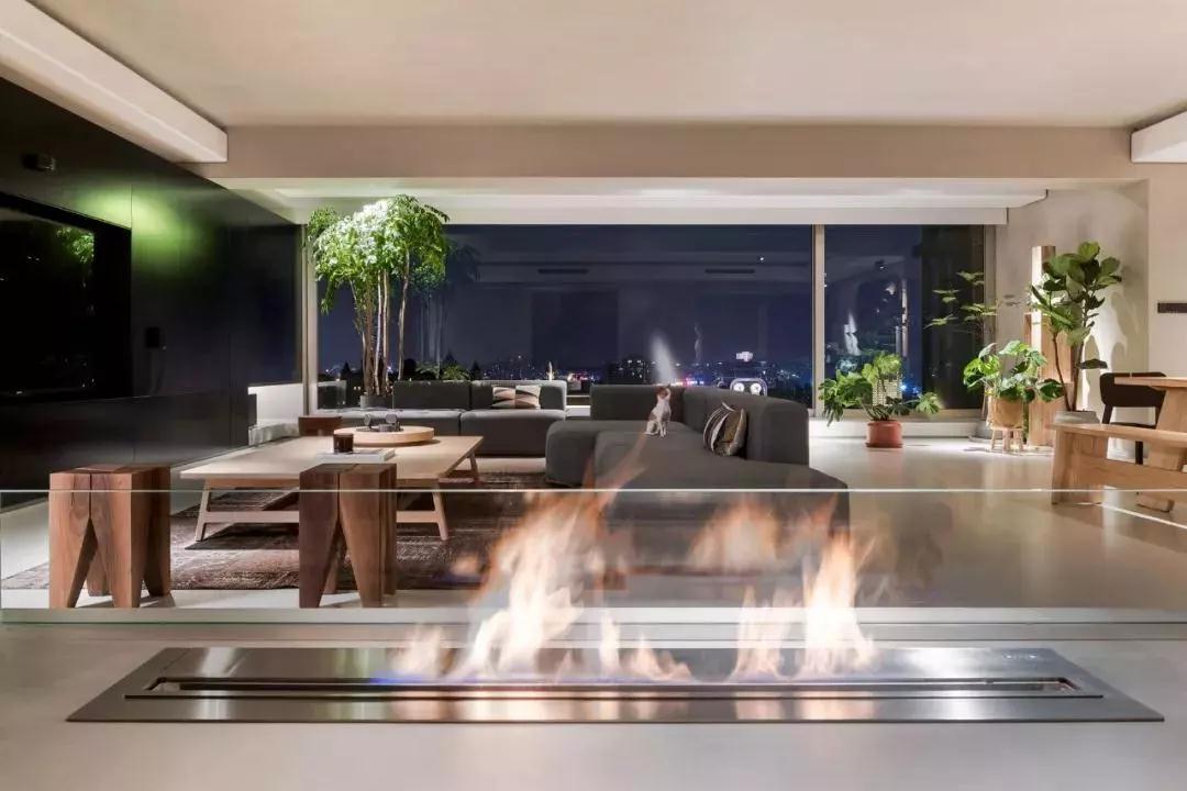 在公共区域的中心位置安装了一个酒精火炉,这样不仅能破除房子的清冷氛围,而且让人在独居的时候更加温暖。