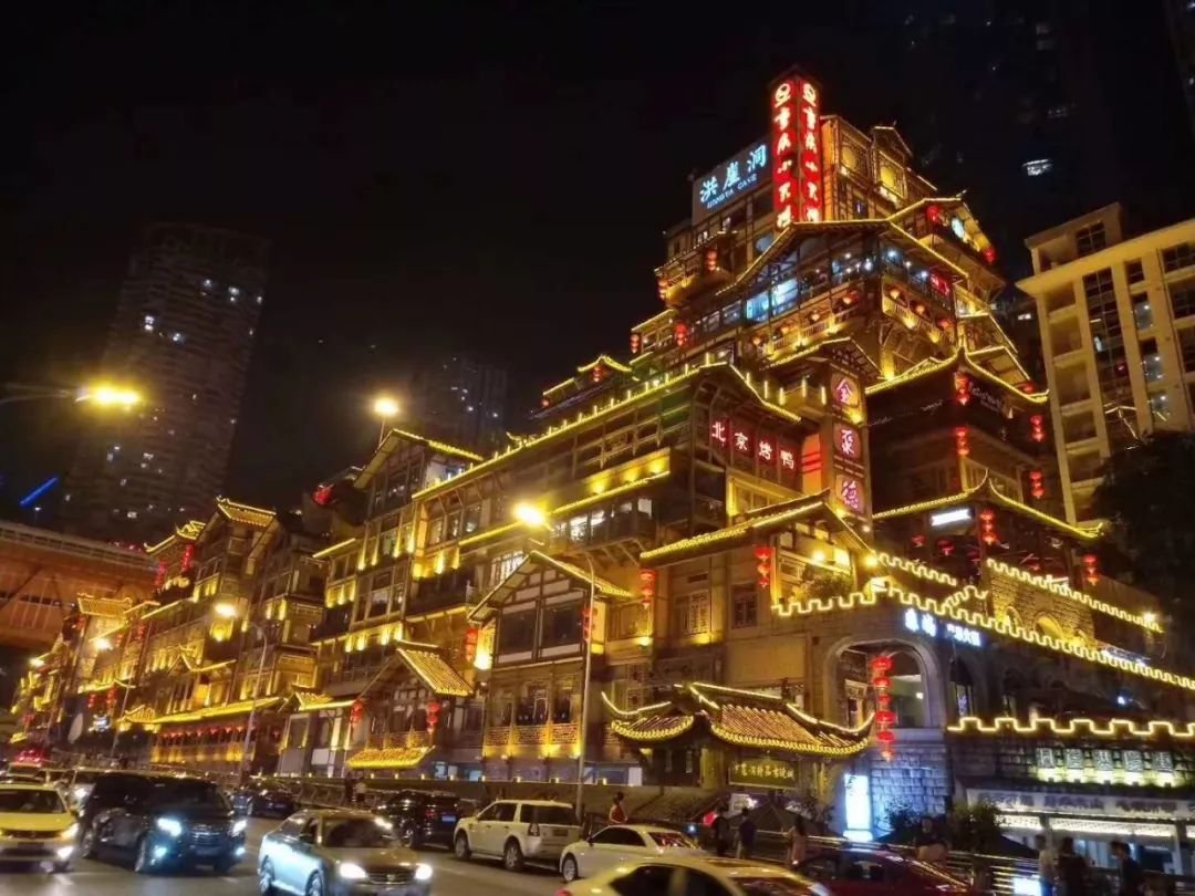 红为酒店所处之地,山城重庆解放碑洪崖洞,无辣不欢、无酒不畅的网红旅游目的地。