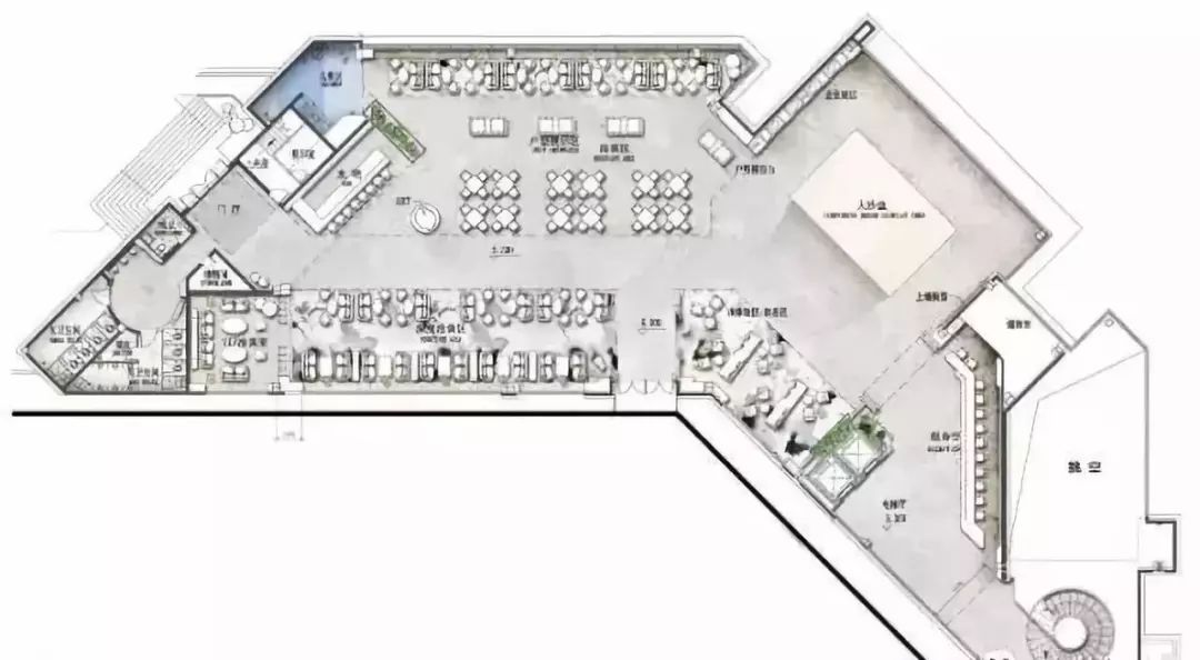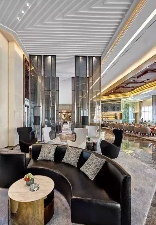 木格栅的循用,使空间富有私密性又与整体气质相协调;不同区域的墙面装置都有别样的设定,水吧及布菲甜点区、儿童区充满人性化设计,潜移默化将东方的优雅、睿智融入设计之中。
