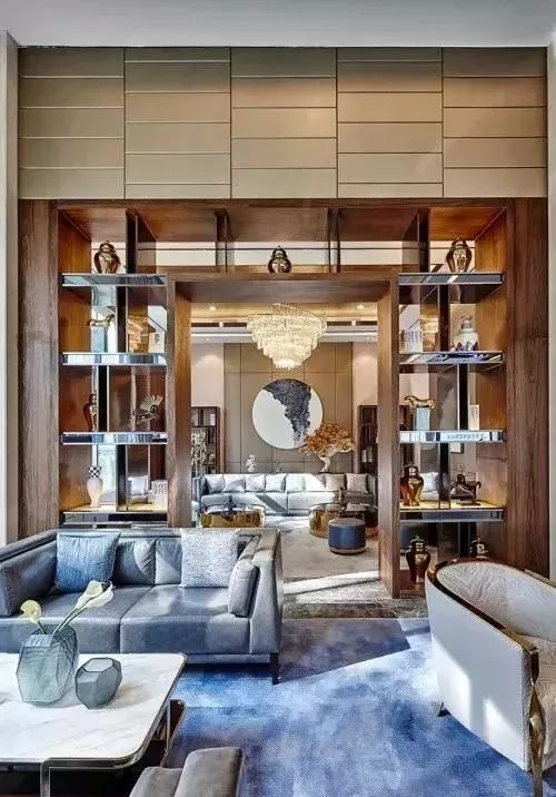 朦胧的窗纱,通过光线的引入,注入了时间的度量,到顶艺术藏品柜陈列于洽谈与贵宾室之间,让来来往往的行人、静坐其中的人们,多了一份多元化的感受,适当地调节了谈话氛围。