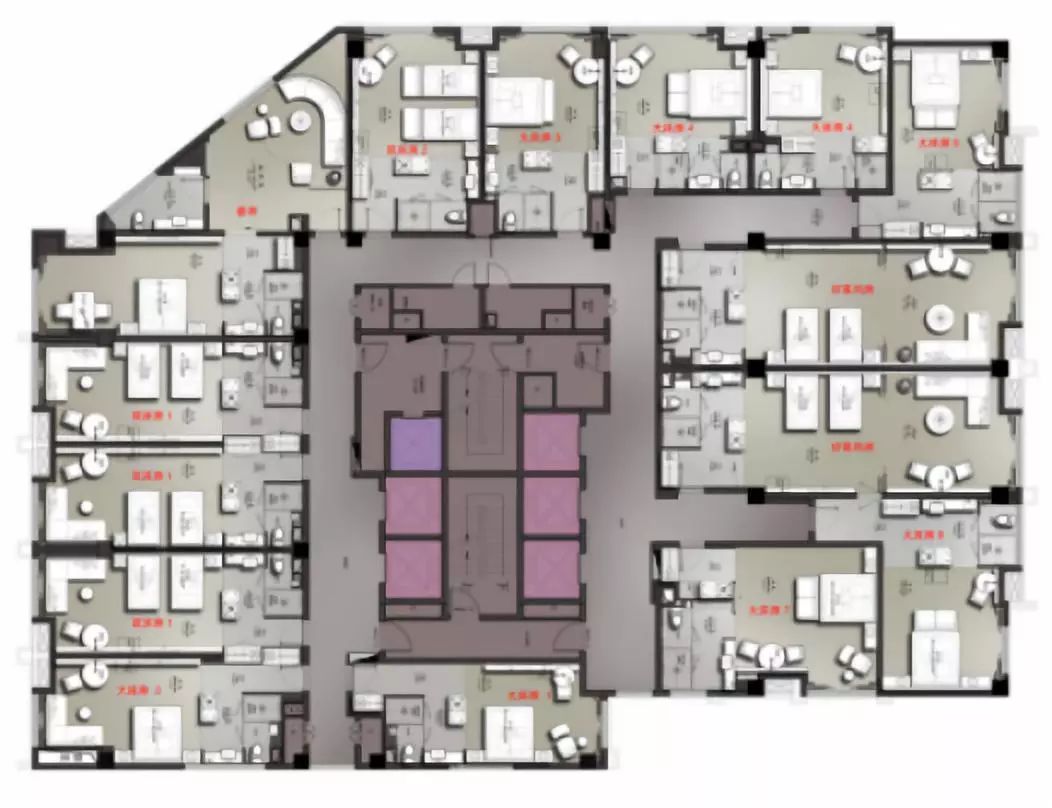 酒店分设了一层靠洪崖洞沿江和二十二层连接解放碑商圈的两个主入口,总体平面布局充分利用了原商住楼的建筑特点,江景区域的客房设置了宽阔舒适的转角沙发供客人观景休闲。