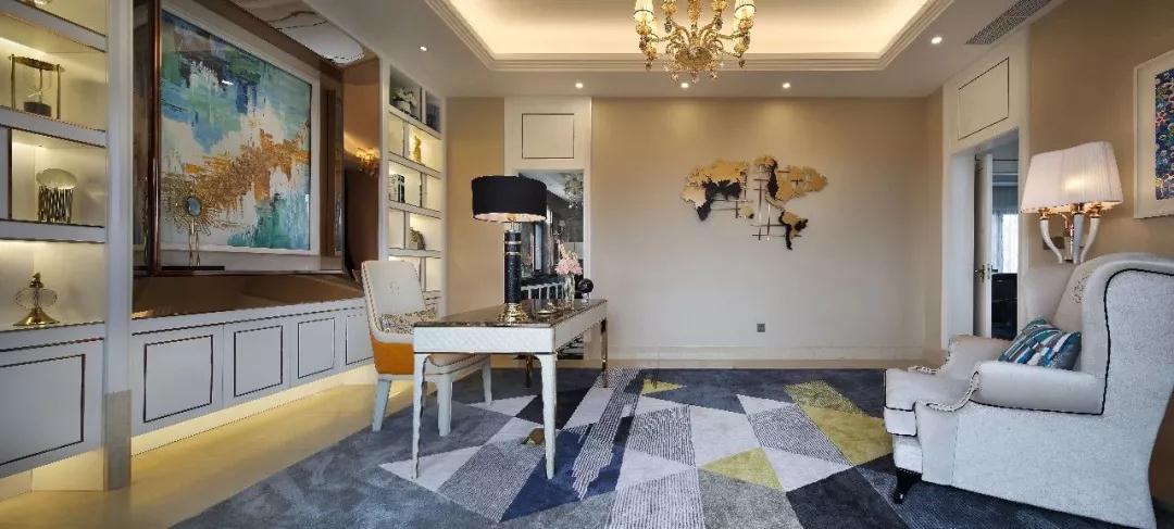 对于此空间的色调,我们追求干净、高雅,室内设计师通过软装布艺和皮革的色彩来展示主人的时尚、优雅和庄重。