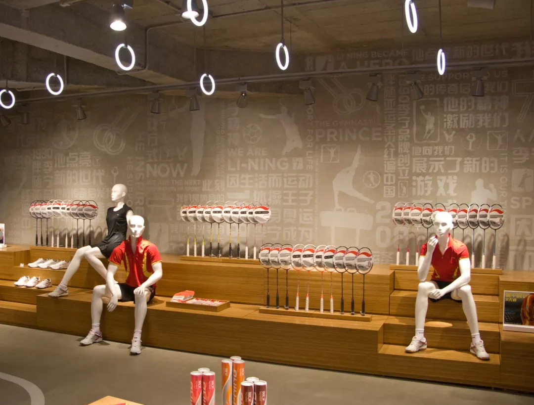 李宁新一代店的空间视觉设计,从中国现代生活出发,提取属于中国人的文化元素,配以现代化的插图、字体及板式设计,创作了李宁英雄墙、空间导引系统及产品推广画面系统,为中国运动精神套上全新的视觉包装,呈现出具有生命力的李宁新形象。