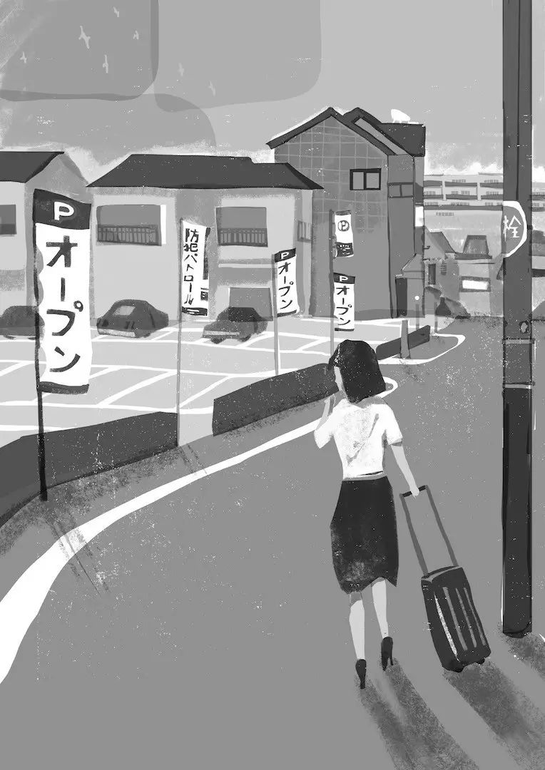 本作品是获得武藏野美术大学 TENUGUI 设计大赛 的特别审查奖的作品。作品以“遥远的队列”为题。 表现了作者所认为的两个生命的本源,即“童心” 与“本能冲动”。作品被商品化后,已在武藏野美术大学官方商店作为官方纪念品出售。