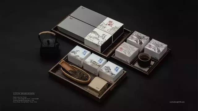 黄山印象·祁红:外盒的结构整体为经典摇盖结构,但是在开启处融入了别出心裁的划分切割,让包装的前视图拥有了徽派建筑的经典造型(马头墙),而为了环保节约,在确定了产品外盒包装的基础上,将腰封进行了个性化手绘设计,并可通过更换不同腰封来变更包装套系。三个内盒的设计,描绘了经过时间的推移,老街样貌所呈现的从古至今的变化。