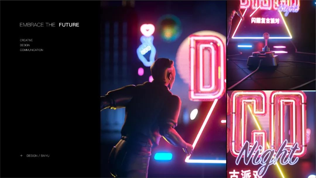作为全球最著名的联合办公品牌,三里屯店的闪耀复古派对,将是一个时尚、潮流、对话年轻人的大party。创作构思上,结合时下流行的赛博朋克风格,让我们一起坐上wework穿梭机,回到80年代。在迷幻科技的氛围中,表达出70-80年代的时空交错感。设计中的led元素也将会以真实的方式布置在活动现场。从三维创意到场景道具表现,为参加party的朋友营造出全维度的体验。