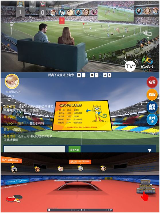 CCTV5《巴西奥运会》同步比赛的VR全景夺金游戏