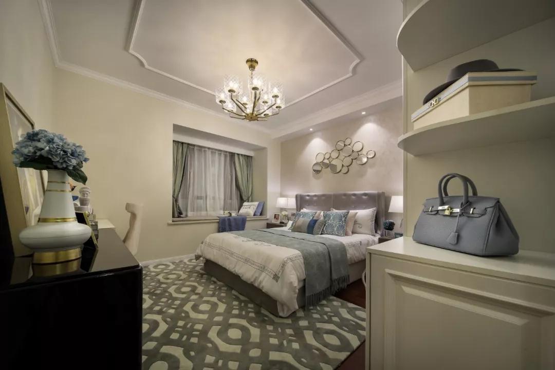 主人房的格调以白色系为主,用暗红和米黄为配色,宝蓝色作为点缀,给我们带来安静,保证了最好的休息睡眠。