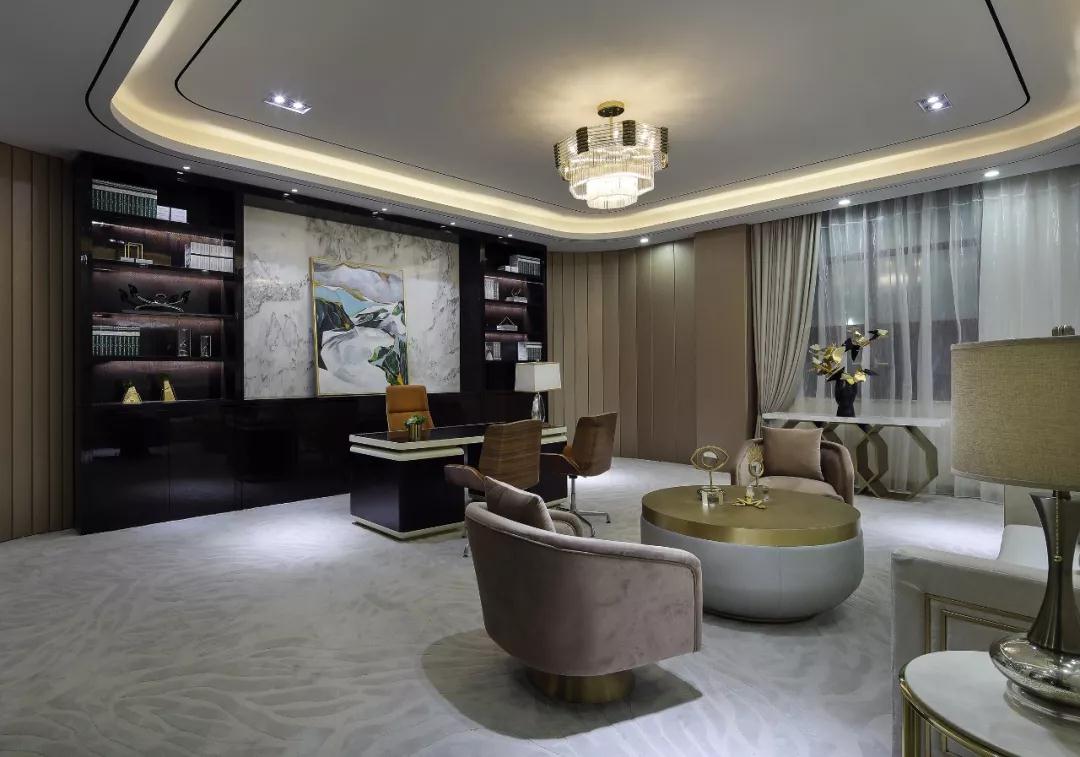 对于此空间的色调,我们追求干净、高雅,室内设计师通过软装布艺和皮革的色彩来展示主人的时尚、优雅和庄重。