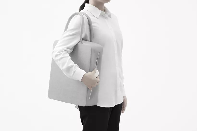 通过移动一个三字形的滑块将三组拉链组合在一起,直接上升到三维空间,打破了原始拉链的平面界限,可以直接将包袋的手柄与包身全部用拉链连接随意打开或者收合。