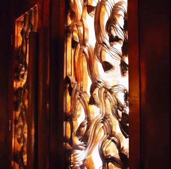 宴会区域的竹构造处理显得相对的巧妙。创意的最初起源于对原有的建筑结构柱所产生的空间阻碍。酒店的整体室内空间方案设计是基于原有的建筑展开的,在设计的过程中原有建筑的层高以及规划的不合理产生了许多新的问题。