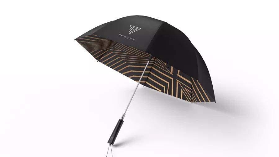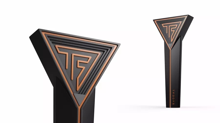TFBOYS 的品牌延展,周边产品气质和品牌形象也是高度吻合、相得益彰。这是粉丝的应援灯牌,黑色主体加入品牌标准色橙色。
