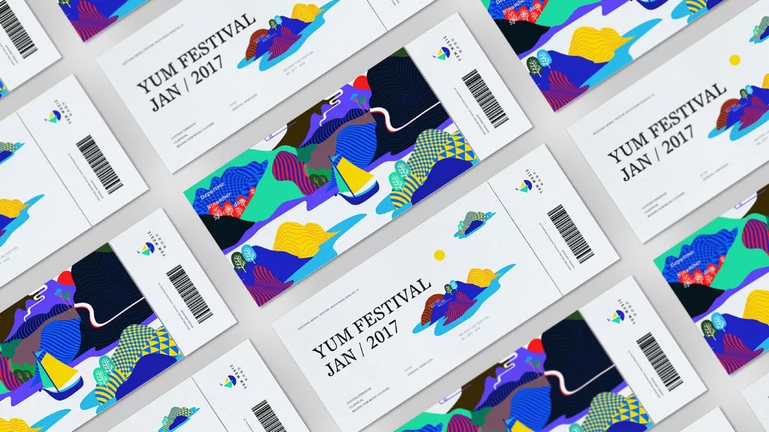 门票、水壶、台历礼盒、工作卡等应用部分,巧妙的加入了辅助图形和标准色黑、白、橙,气质雅致而不失活力。