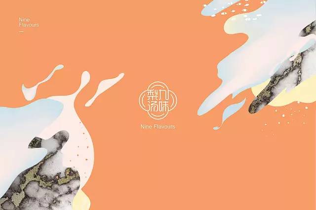 九味梨汤是一家主要针对时尚女性的主题餐厅,体现其少女心的同时也需要其品牌形象有一定的优雅,在设计中以梨花的形态作为logo,以水墨形态搭配淡雅色调融合红铜色与大理石图案,体现其女性、中餐、优雅、高贵的整体品牌气质。