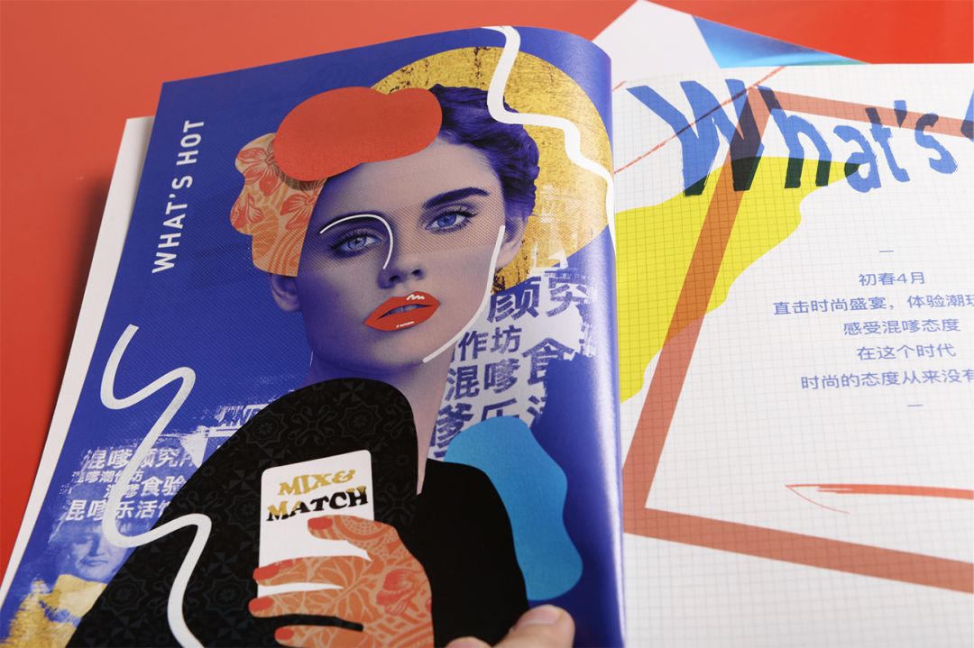 在2018年夏季刊中,在“吃冰地图拉页”的创意形式上,白语有意增加了信息识别兴趣点。并以“夏”字作为季节刊物的视觉关键元素,游泳池、沙滩、椰子树等,配合三维动态技术,AR技术呈现,浏览引导到官方微博。从商场定点刊物,到每层商业海报,形成了多维展示的投射网,向消费者传递商场信息,与他们进行更有趣的交流。
