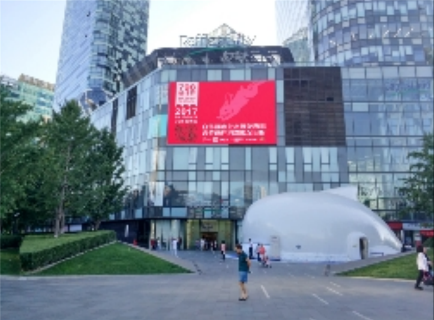 本次设计节线下宣传渠道包括:200面灯杆道路旗、8块滚动灯箱、停车场大屏幕9天、798绿植广告墙1块、200余家798艺术区商户门口广告展示、5块北京地标型户外LED大屏展示1周,王府井、来福士、世贸天阶等、6000块楼宇广告屏展示。