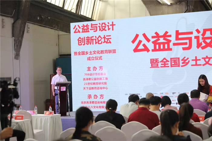 2017年798设计节9月16日开幕,北京八六文化有限公司、北京善泽君咨询有限公司承办的公益与设计创新论坛暨全国乡土文化教育联盟成立仪式首先登场。